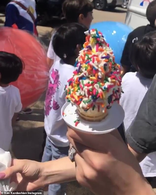 And going the extra mile, Kim even hired a private Mr Softee ice-cream truck for all the kids (and adults) looking for an added sweet treat, something which even she enjoyed.