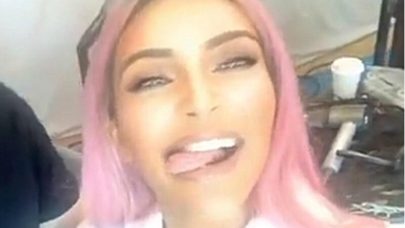 She was still in a white bathrobe as her pink hair was parted in the middle and flowed down her shoulders.