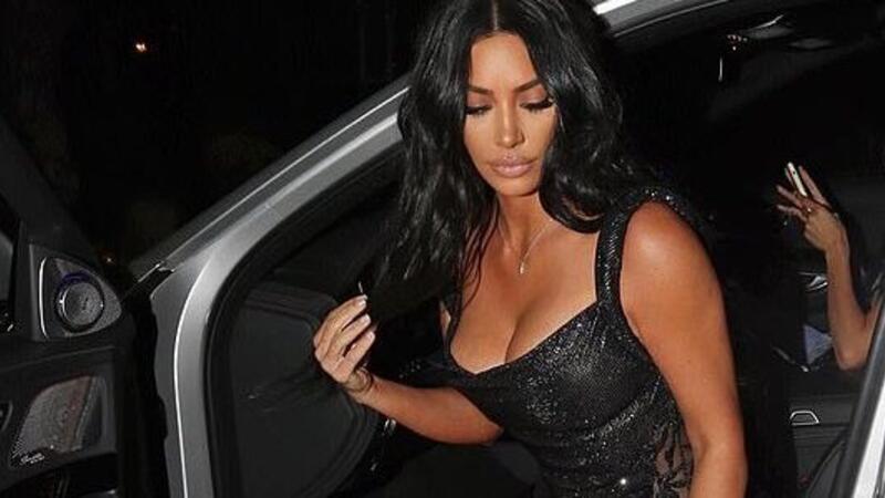 Kim strut her stuff in lace-up heels while the lights shining on her figure highlighted her curves in all the right places.