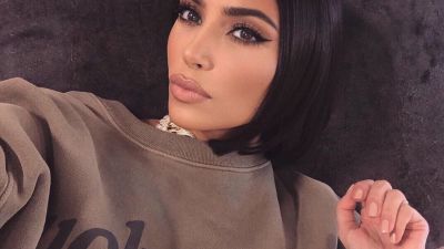 The Keeping Up With The Kardashians mainstay wore her raven tresses loose and in a chin-length bob style.