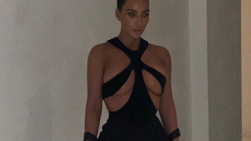 Kim Kardashian shocked wearing an outrageous 1998 Thierry Mugler vintage gown on Sunday night, which had restrictive cut-outs at the cleavage.