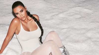 But his presence was still felt as Kim, 40, prepared for a home workout in a pair of his self-designed Yeezy Boost trainers.