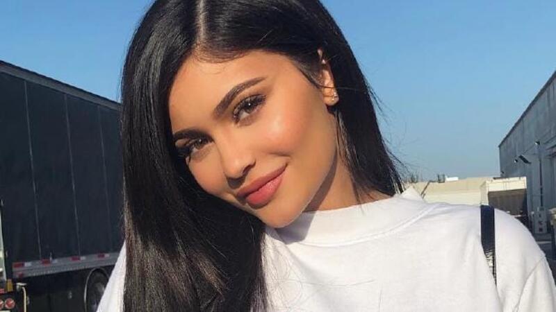 Kylie opted for a brown colored crop top and a pair of figure hugging denim jeans.