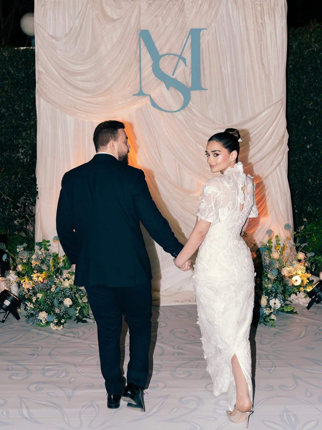 Sherif Elleissy and Malak Ahmed Zaher from their engagement party. (Instagram)