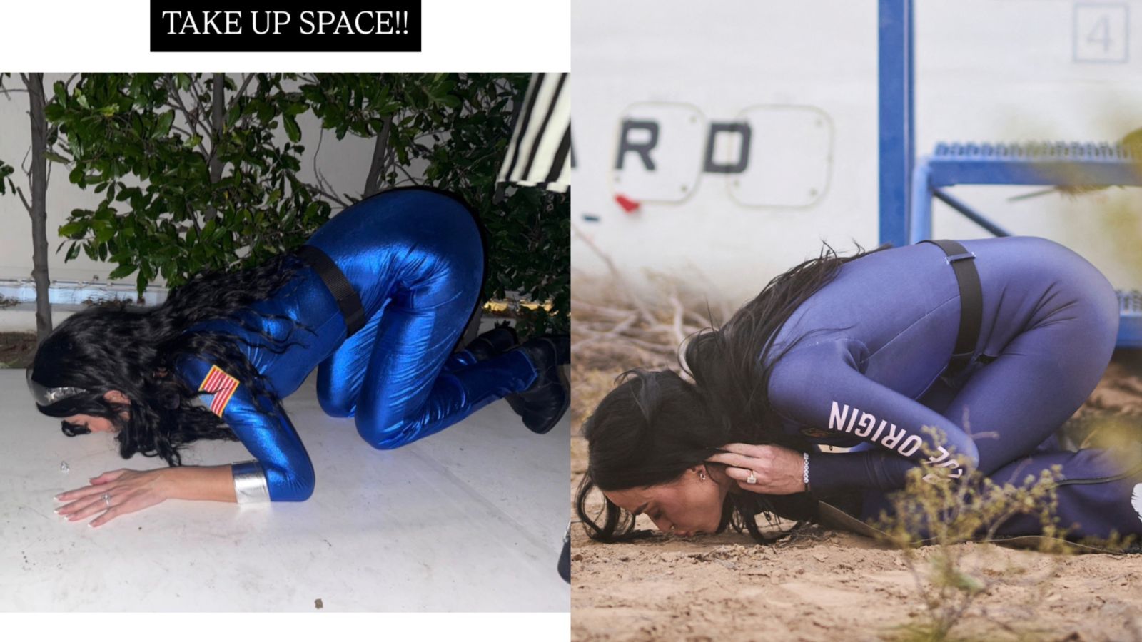 In another picture Matthews, 32, copied a picture that made headlines of Perry kissing the ground when she got back to Earth and wrote, "Take up space!"