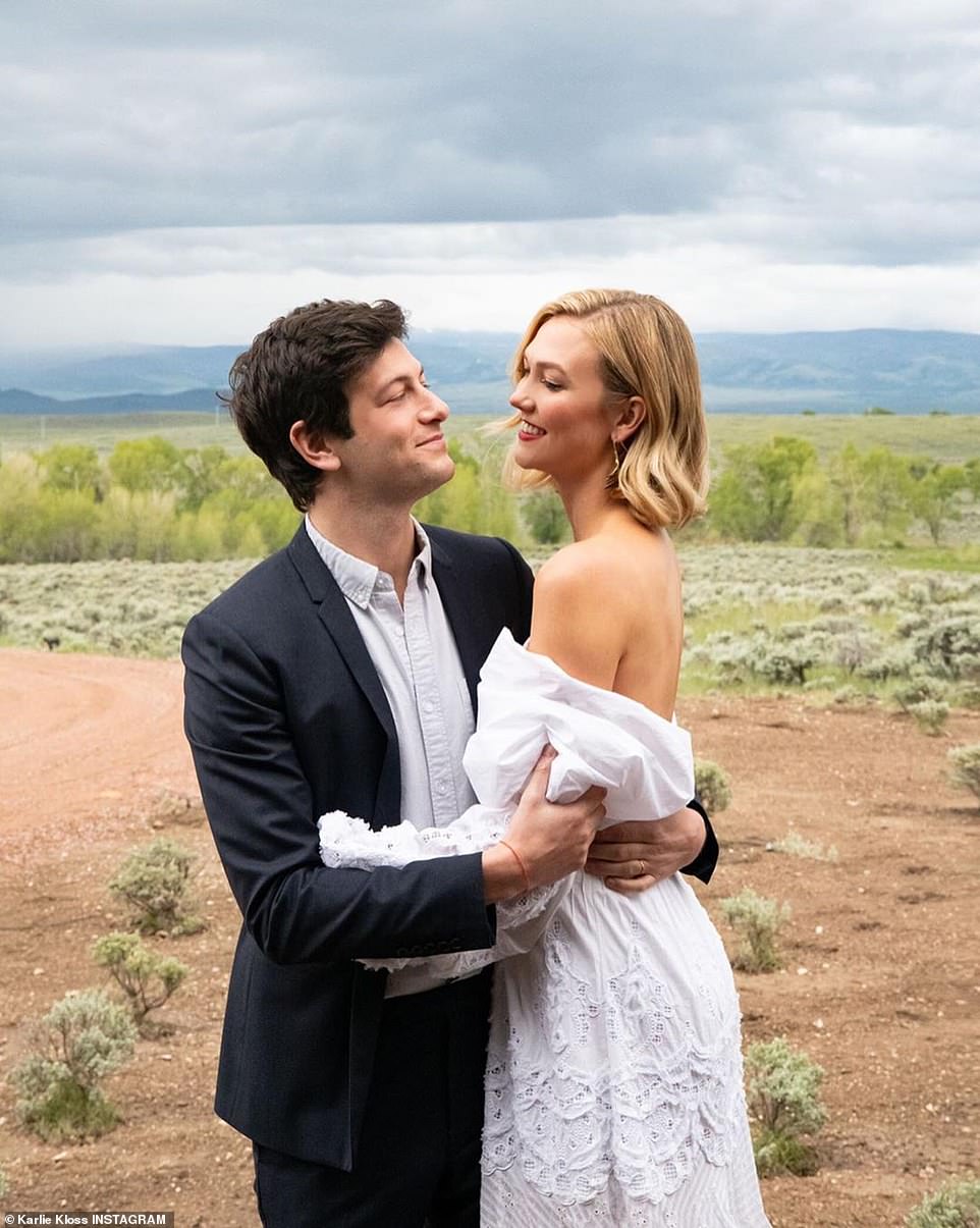 Kloss wore a $1,595 white, off-the-shoulder dress by Jonathan Simkhai, and at some point changed into another dress with a high-low hem. Her husband, meanwhile, wore a dark suit to the party.