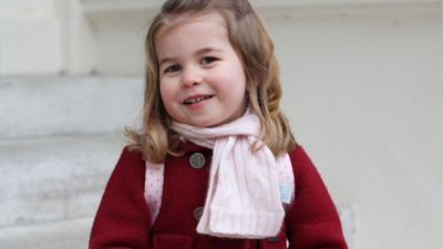 The adorable picture shows Charlotte wearing a red coat, shoes and bow with a pink scarf and backpack. Middleton, the Duchess of Cambridge, took the photo on Charlotte's first day of nursery school.