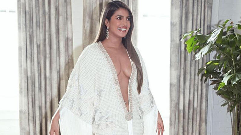 For the occasion, Chopra looked sharp wearing a white, tailored blazer atop a silky, cream-colored slip skirt.