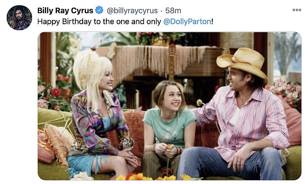 Longtime friend Billy Ray Cyrus shared a photo from one of the Jolene singer's cameos on Hannah Montana, the Disney Channel show that made Dolly's goddaughter Miley Cyrus famous.