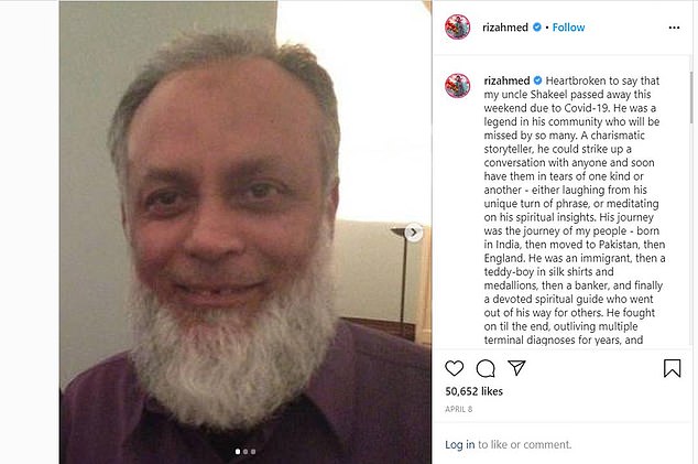 He previously revealed that his uncle Shakeel had died on the weekend of April 4, describing him as a 'legend in his community who will be missed by so many'.