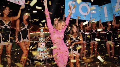 Richie, singer Lionel Richie’s daughter, was joined by her beau Scott Disick at the city’s XS Nightclub, where she partied the night away and enjoyed a towering, multi-colored cake for her 21st birthday — all while wearing a form-fitting, dazzling catsuit by Al-Jasmi, which she paired with Jordanian-Romanian shoe designer Amina Muaddi’s Lupita Mules.