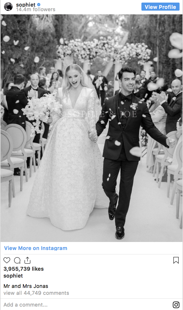 Mrs. Jonas: Sophie Turner and Joe Jonas have shared the first photo of their highly anticipated wedding on Wednesday where the bride wore a custom Louis Vuitton gown
