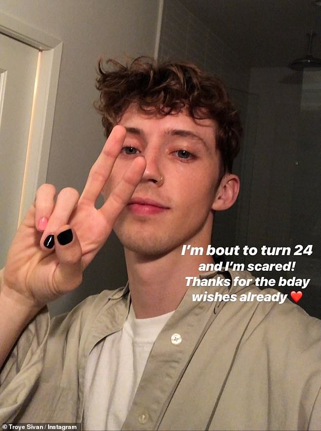 Taking to Instagram on Tuesday, ahead of his 24th birthday, Troye revealed that he's scared of getting older - but did not elaborate on why.