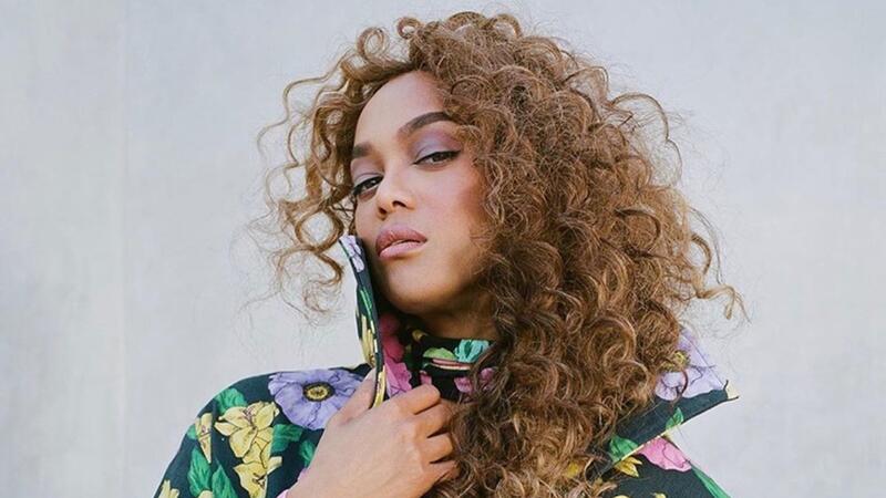 Tyra looked amazing in the crimson number, which featured a solid hued top half with polka dots of different sizes in white and silver on the skirt.