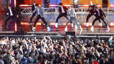 BTS released its latest album, Map of the Soul: 7, in February. The group postponed its North American tour in March due to the coronavirus pandemic.