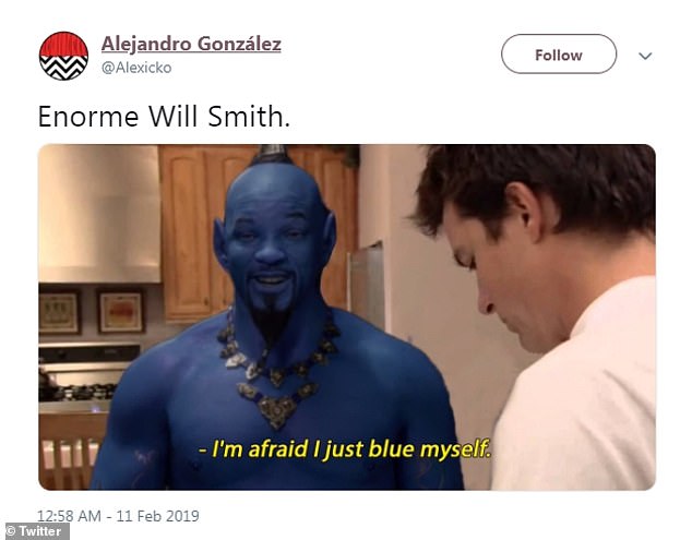 Good one: And the DIY memes have since overflowed poking fun of Smith as the big blue wish granter, including one reinterpreting the NBC sitcom The Fresh Prince of Bel-Air