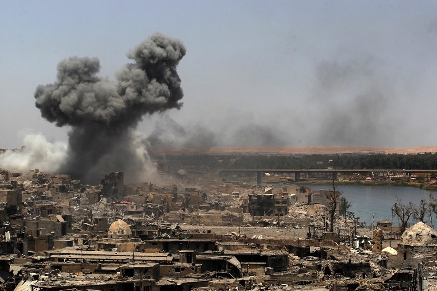 During the battle for Mosul, thousands of civilians were evaporated by U.S. drones, and the city was reduced to heaps of rubble.