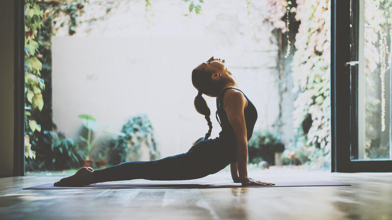 Also known as the Upward Facing Dog Pose, this one stretches the chest and lungs, in addition to the shoulders and helps relieve stress and fatigue.