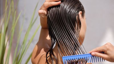 - Spray evenly on wet hair, starting at the ends and working toward the scalp.