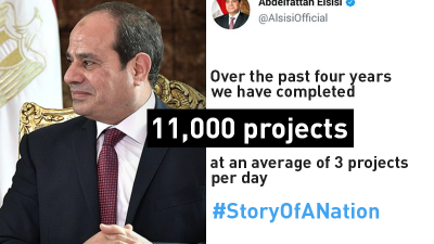 The boast was tweeted to Sisi’s official Twitter account as part of “Story of a Nation” event, an exercise in self-congratulation prior to the announcement Friday that he would run for a second term.