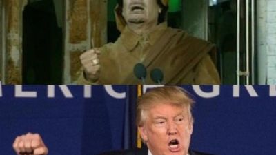 Meanwhile, one Facebook user went above and beyond to identify some striking similarities between Trump and his unlikely doppelganger in the figure of the late Libyan dictator Muammar Gaddafi. The former reality television star is not immune to a touch of plagiarism, and it seems like a number of his tweets could be cut and pasted from Gaddafi’s famous “Green Book”, a work setting out his political philosophy.