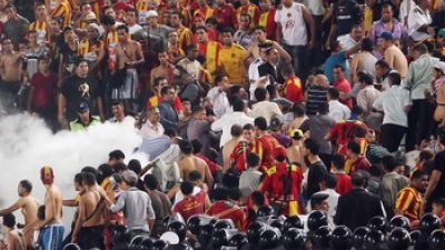 Egyptian police confirmed 11 officers were wounded when angry Tunisian football fans ripped out stadium seats, threw them and hurled fireworks into the pitch during a tense match between Al-Ahly and visiting Esperance of Tunisia. According to the AP, a police report issued on Monday indicated the disturbance took place during the first leg of an African Champions League semifinal played Sunday evening in Cairo. Al-Ahly won 2-1.