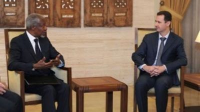 Syrian President Bashar al-Assad received in Damascus Saturday Kofi Annan, the special envoy of the UN and the Arab League. The meeting at the presidential palace, was held in a "positive atmosphere", reported the Syrian state television.