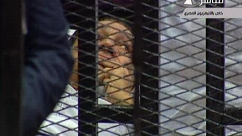 Mubarak was placed reclined on the stretcher in the dock, exchanging brief words inside the cage with his two sons and co-defendants on graft charges, Gamal and Alaa. They have also pleaded innocent to the graft accusations.