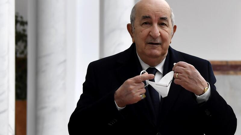 Algerian President Abdelmadjid Tebboune is pictured upon his arrival at the Tunis-Carthage airport, at the start of his visit to the Tunisian capital, on December 15, 2021. (Photo by FETHI BELAID / AFP)