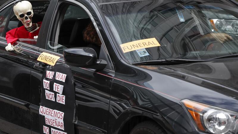 The teachers and support staff demanded that schools hold off until scientific data supports such a move, safety protocols such as lower class sizes and virus testing are established, and schools are staffed with adequate numbers of counselors and nurses, according to a website set up for the demonstrations.