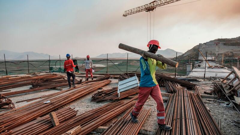 Workers at the Grand Ethiopian Renaissance Dam in Ethiopia on 26 December 2019 [EDUARDO SOTERAS/AFP/Getty Images]