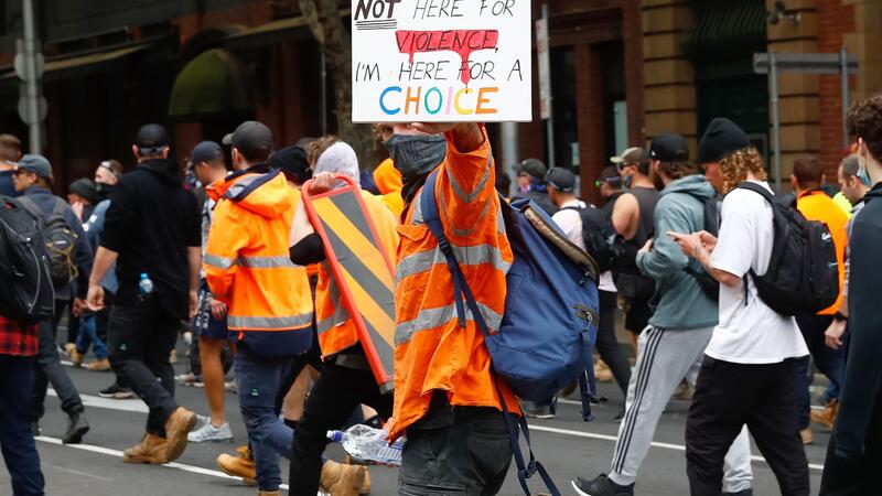 The protests were sparked by the Victoria state government’s decision this week to shut down the construction industry for two weeks in Melbourne and some regional areas.