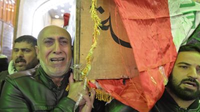 Iraqi mourners carry the coffin of a victim who was killed in a twin suicide bombing in central Baghdad, during a funeral in the holy city of Najaf on January 21, 2021. A rare twin suicide bombing killed 32 people and wounded 110 at a crowded market in central Baghdad, Iraq's government said, the city's deadliest attack in three years. The first attacker drew a crowd at the bustling market in the capital's Tayaran Square by claiming to feel sick, then detonated his explosives belt, the interior ministry said. As more people then flocked to the scene to help the victims, a second suicide bomber set off his explosives. Ali NAJAFI / AFP