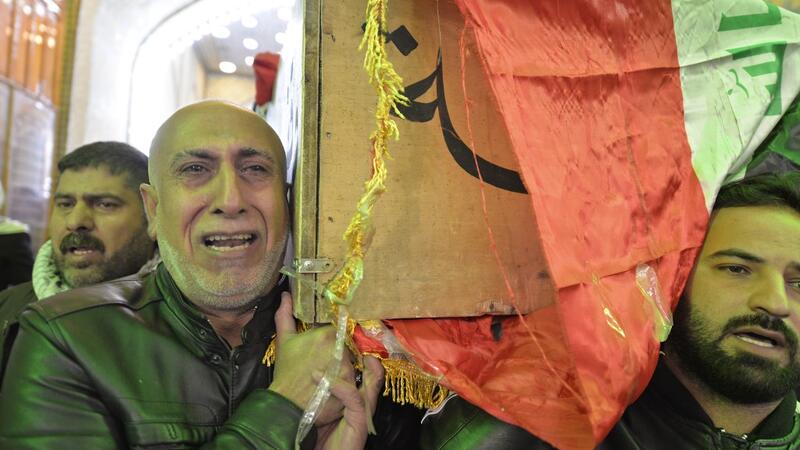 Iraqi mourners carry the coffin of a victim who was killed in a twin suicide bombing in central Baghdad, during a funeral in the holy city of Najaf on January 21, 2021. A rare twin suicide bombing killed 32 people and wounded 110 at a crowded market in central Baghdad, Iraq's government said, the city's deadliest attack in three years. The first attacker drew a crowd at the bustling market in the capital's Tayaran Square by claiming to feel sick, then detonated his explosives belt, the interior ministry sai