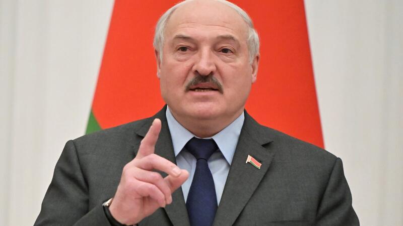 In this file photo taken on February 18, 2022 Belarus' President Alexander Lukashenko gestures as he speaks during a press conference with his Russian counterpart following their talks at the Kremlin in Moscow. (Photo by Sergei GUNEYEV / SPUTNIK / AFP)