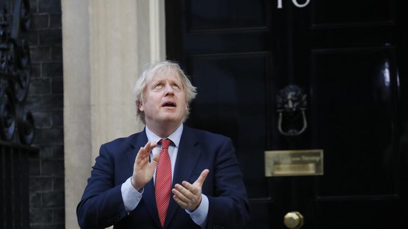 Britain's Prime Minister Boris Johnson participates in a national "clap for carers" to show thanks for the work of Britain's NHS (National Health Service) workers and other frontline medical staff around the country as they battle with the novel coronavirus pandemic, outside 10 Downing Street in London on May 28, 2020. Tolga AKMEN / AFP