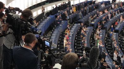 MEPs from Brexit party_uk turn their back as the EUropean anthem is played in the European Parliament (Twitter)