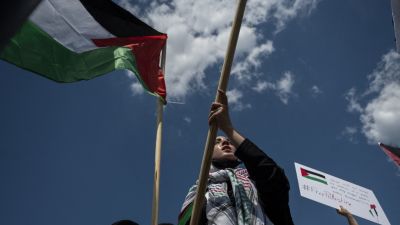 Activists and protesters march in support of Palestine near the Washington monument in Washington, DC on May 15, 2021. US President Joe Biden, in a phone call with Israeli Prime Minister Benjamin Netanyahu, expressed his "grave concern" Saturday over the flareup of violence in Israel and Gaza, the White House announced. ANDREW CABALLERO-REYNOLDS / AFP