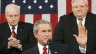 President Bush on Wednesday (Thursday, Middle East time) told Congress, in his State of the Union address, that he would confront regimes that promote terror and pursue weapons of mass destruction, and singled out Syria and Iran. Returning to his inaugural address' theme of spreading democracy, Bush hailed the success of Sunday's elections in Iraq.
