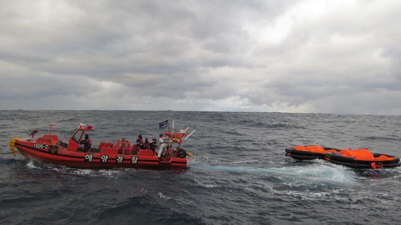 Despite bad weather conditions, search continues by rescue teams in South Korea and Japan for the missing.
