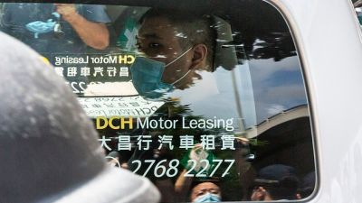 Mr Tong is accused of ramming and injuring some officers at an illegal protest on Wednesday, according to police.