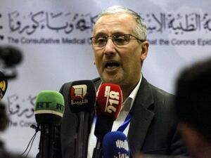 Ahmed al-Hassi, spokesman for the medical committee to combat COVID-19 coronavirus disease in Libya's eastern city of Benghazi, speaks during a press conference on March 20, 2020 announcing updates on figures for suspected cases. Abdullah DOMA / AFP