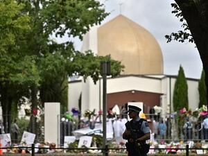 A policeman patrols as delegates and religious leaders wait to enter Al Noor Mosque in Christchurch on March 23, 2019. (File/AFP)