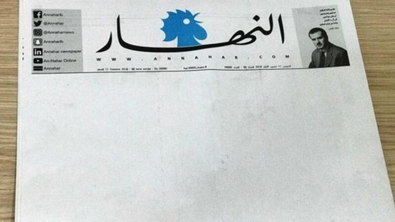 The daily only printed the newspaper’s title, the picture of its late editor-in-chief Gebran Tueni and his famous oath, the publication’s social media usernames and editorial information.