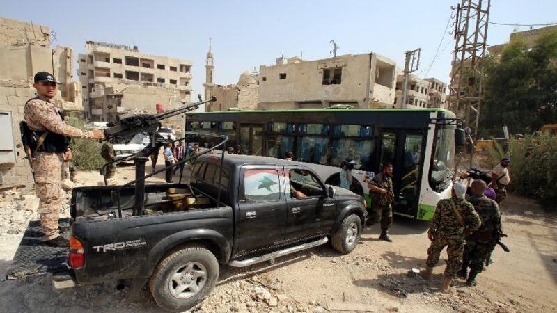 Earlier several buses reported to be carrying rebel fighters and their families arrived in the opposition held northern Syrian city of Idlib.