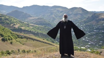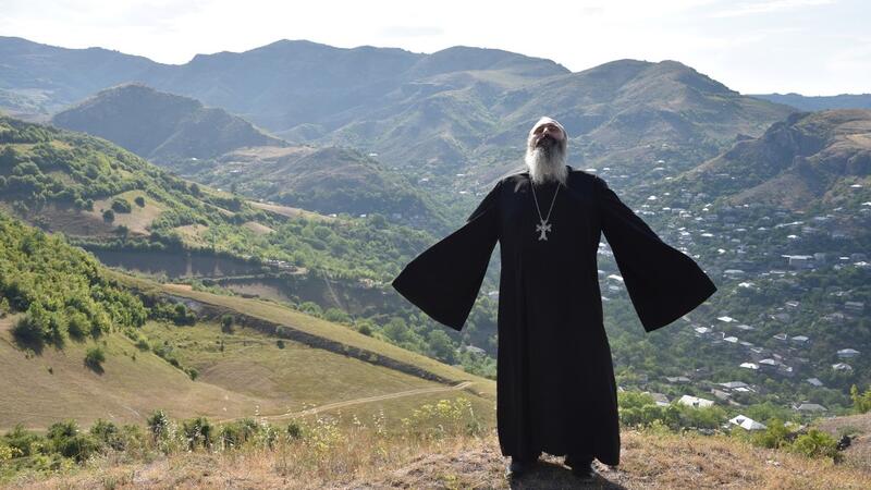 Priest Ter Abel prays for peace outside the village of Movses on the Armenian-Azerbaijani border on July 15, 2020. Defence officials in Armenia and Azerbaijan said fighting on their border subsided on July 15, 2020 after several days of deadly clashes raised fears of a major flare-up. At least 16 people on both sides were killed in three days of shelling that started Sunday between the ex-Soviet republics, which have been locked for decades in a conflict over Azerbaijan's separatist region of Nagorny Karaba