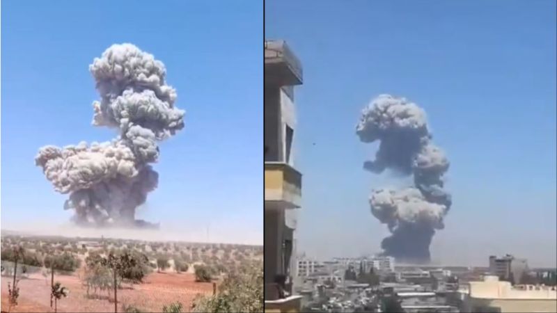 Some videos were posted on social media showing a huge cloud rising into the sky, and allegedly said that a massive explosion occurred at an "ammunition warehouse" near Maarat Misrin in the Idlib countryside a short while ago.4