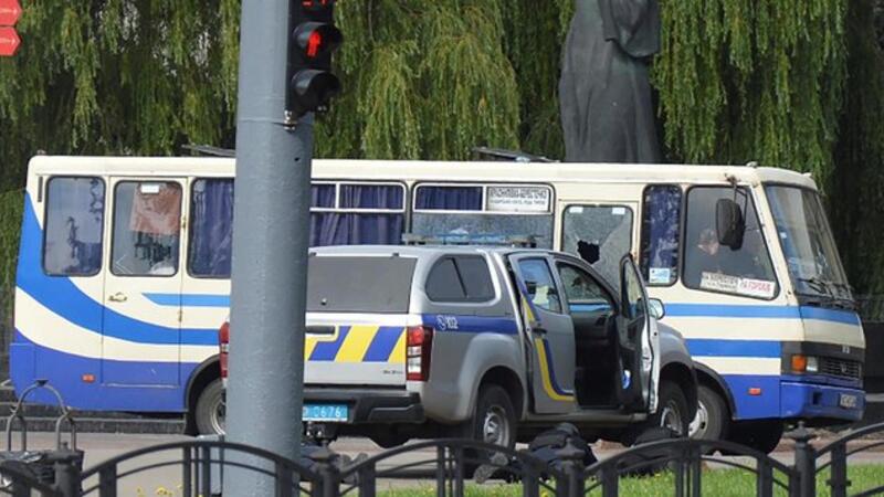 'Gunshots have been heard, the bus is damaged,' Zelenskiy said in a Facebook statement, adding that measures are being taken to resolve the situation without casualties.