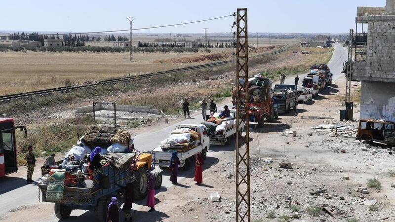 With the new arrivals, at least 3,300 people have been evacuated from Daraa to Idlib and Aleppo’s western countryside in recent days.
