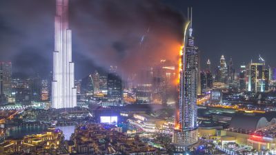 Dubai Civil Defence quickly responded to the fire at the 8 Boulevard Walk Tower and the blaze had been extinguished just before 4 a.m.